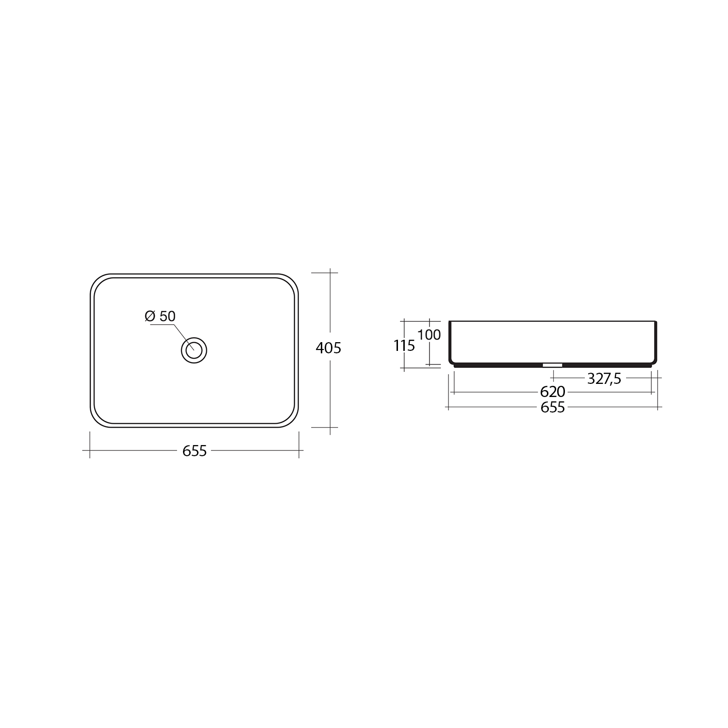 BLADE keramické umyvadlo na desku, 65x40cm, bílá