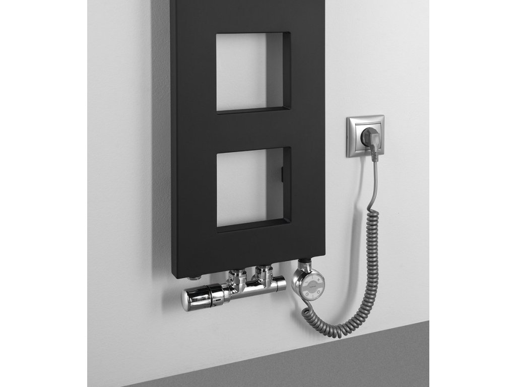 Designový radiátor ve dvou barevných variantách a dvou rozměrech. Ačkoliv má topení středové připojení, lze u něj zároveň použít topné tyče.