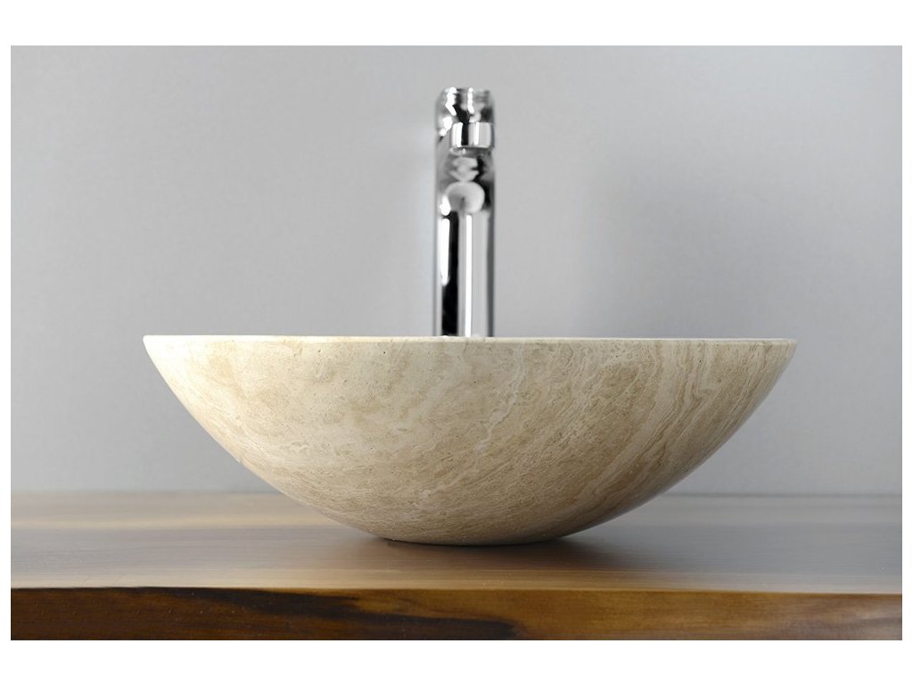 BLOK 1 kamenné umyvadlo na desku Ø 40cm, leštěný béžový travertin