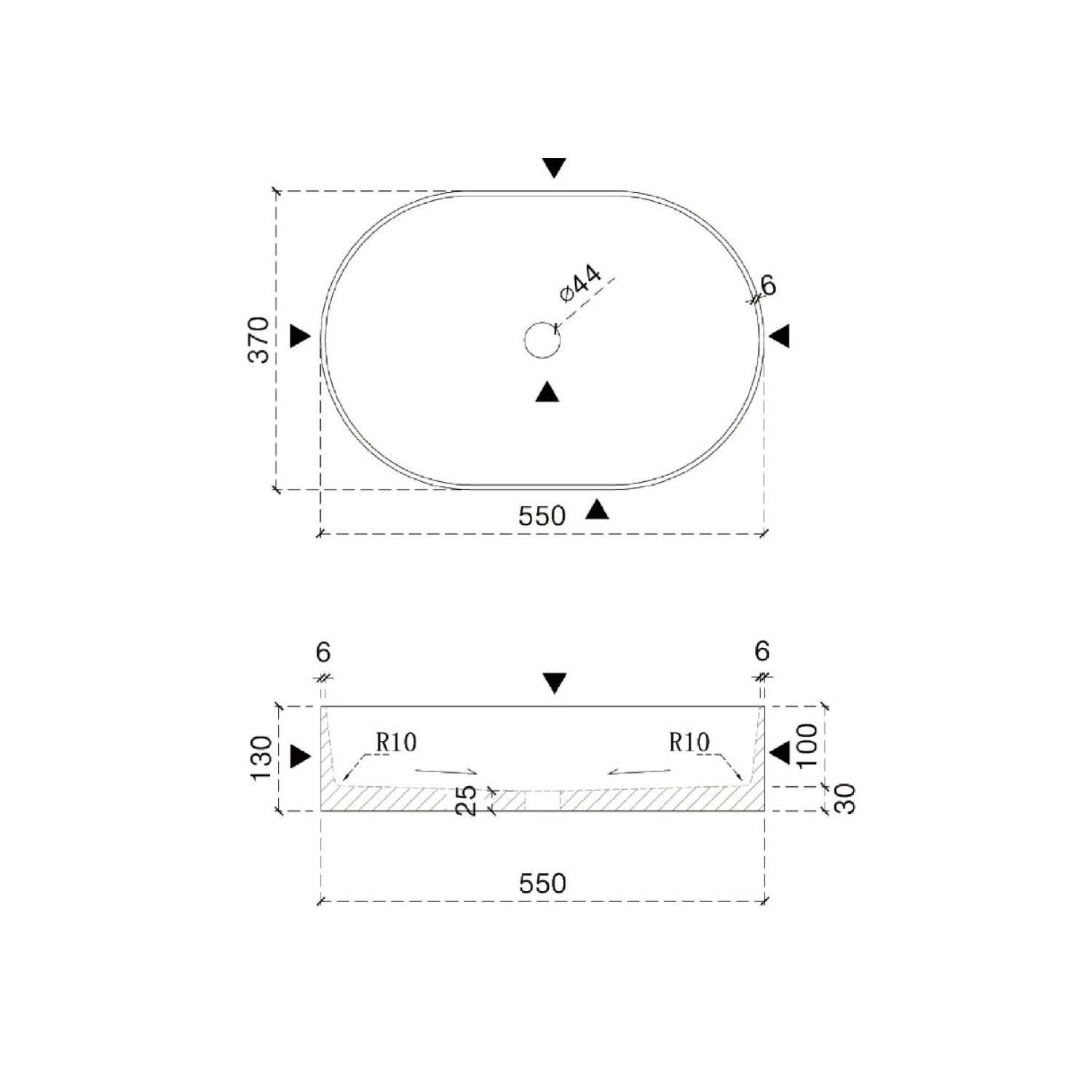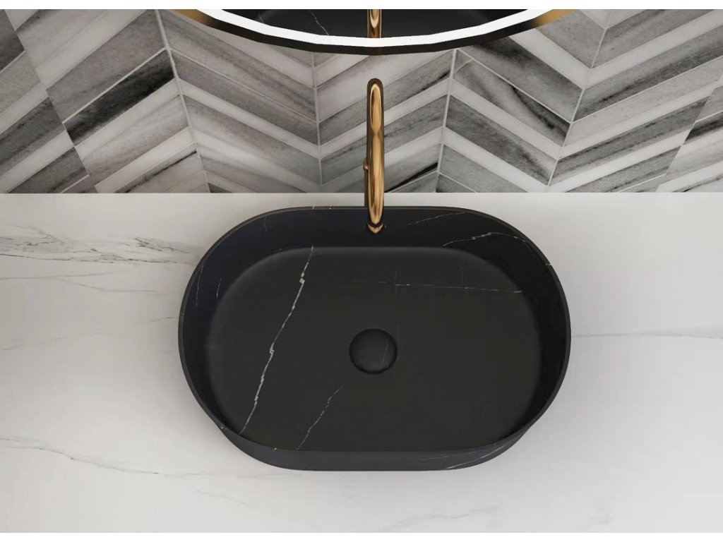 BLOK kamenné umyvadlo na desku, 55x37cm, matný černý Marquin