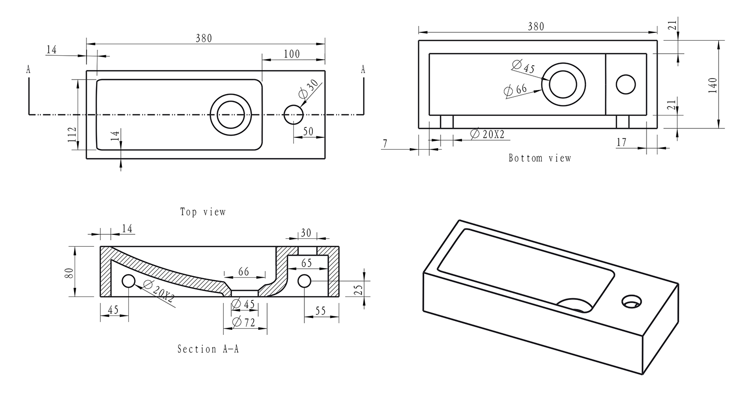 BLOK kamenné umývátko 38x14cm, baterie vpravo, antracit