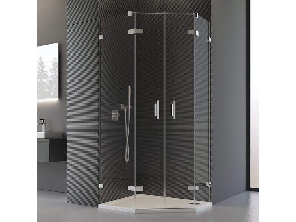 Boční stěna od společnosti RONAL splňuje vysoké nároky na design a individuální řešení koupelny. Chromované L-kování, 8mm bezpečnostní sklo s antiplakovou úpravou. Dodáváno se stabilizační vzpěrou. Těsnicí U-profil 50552. Pro kompletní pětiúhelník je třeba objednat 2 boční stěny.Doplňkové parametry
