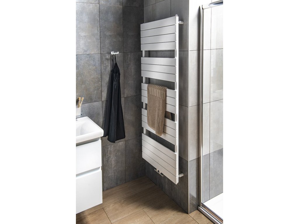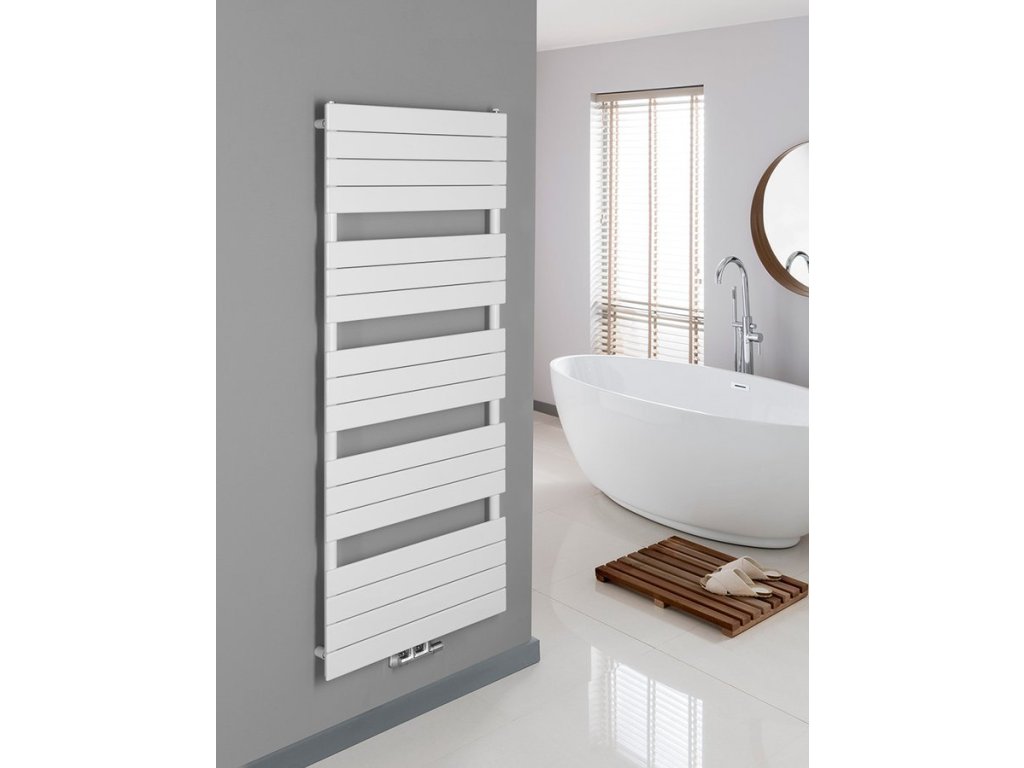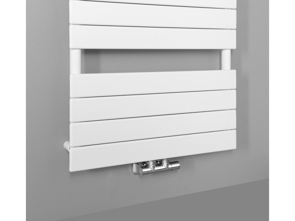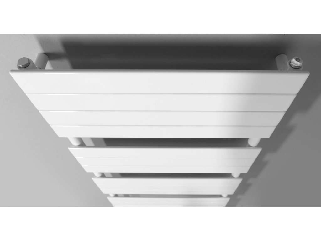 Stylový radiátor z hladkých zaoblených ocelových profilů s praktickým středovým připojení s roztečí 50 mm a zároveň otvory se záslepkou ve svislých kolektorech umožňují kombinované zapojení elektrické topné tyče nebo stranové připojení.