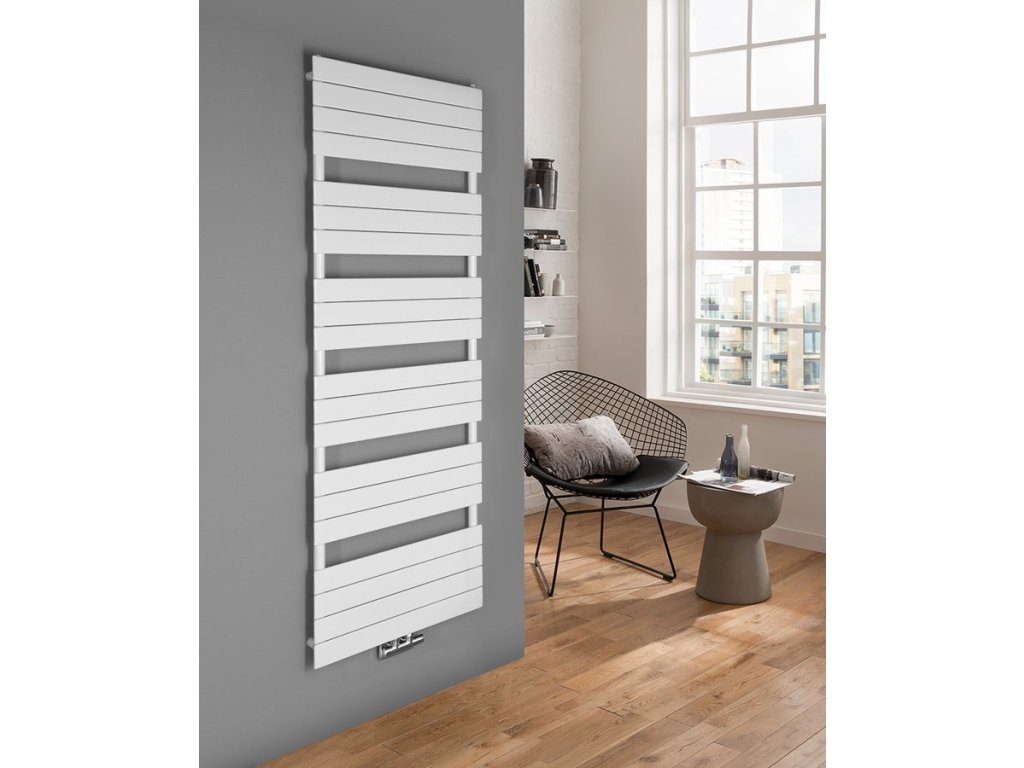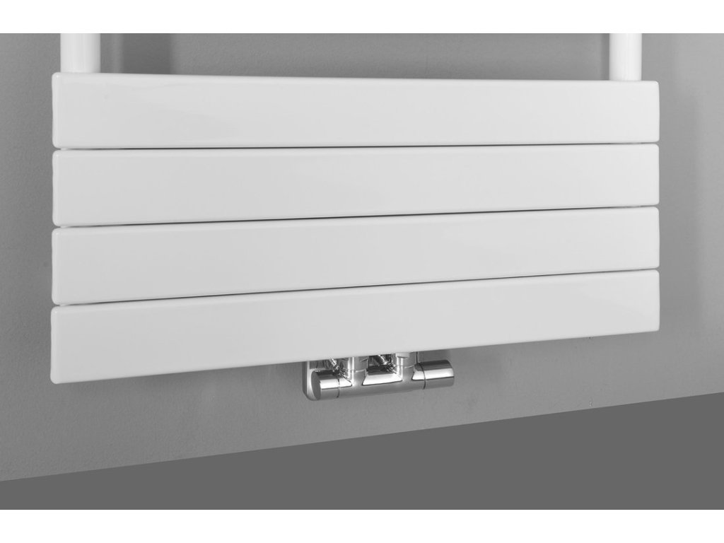 Stylový radiátor z hladkých zaoblených ocelových profilů s praktickým středovým připojení s roztečí 50 mm a zároveň otvory se záslepkou ve svislých kolektorech umožňují kombinované zapojení elektrické topné tyče nebo stranové připojení.