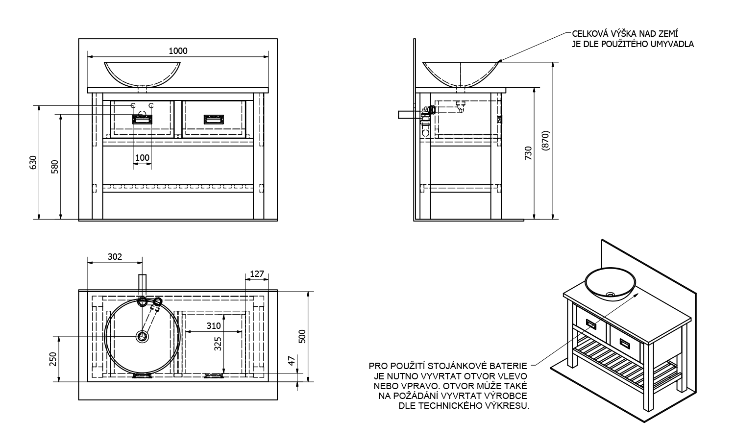 BRAND umyvadlová skříňka 100x73x50cm, mořený smrk
