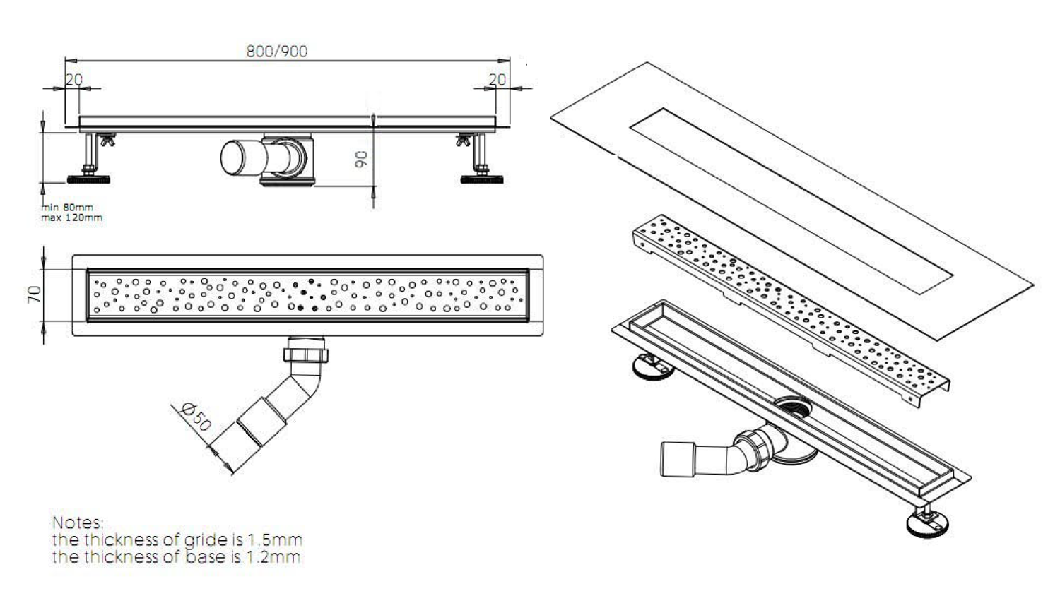 | Délka sprchového kanálku do: | 900 |