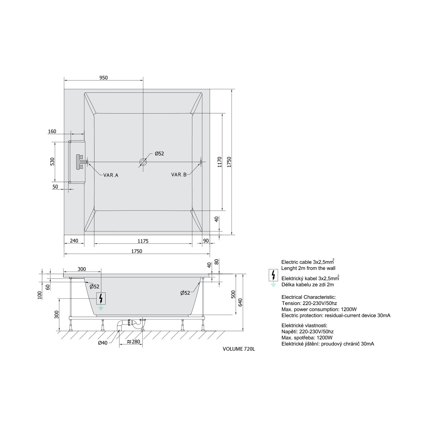 | Rozměr: | 175x175x50 cm |