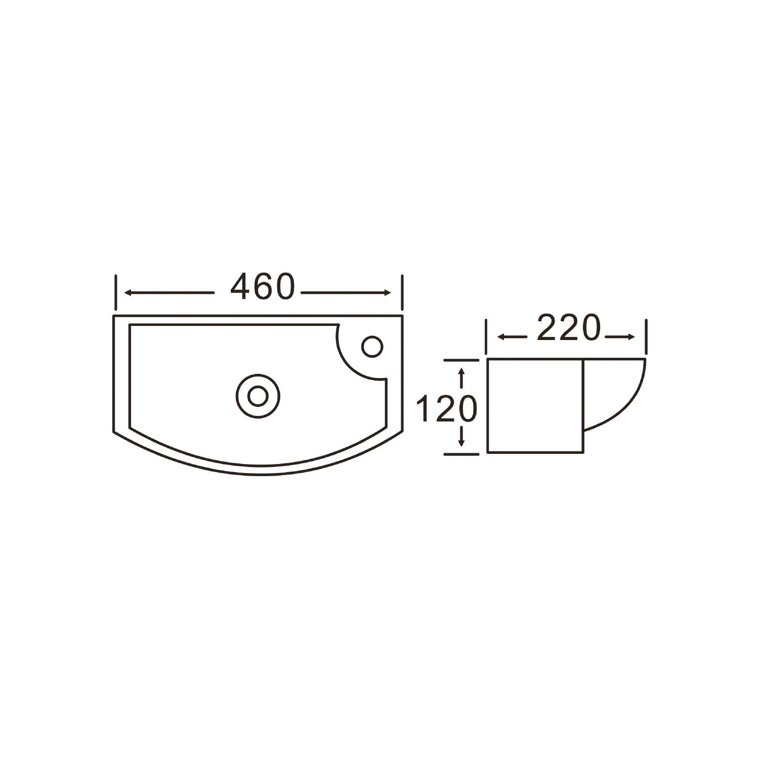CARLON keramické umývátko, 45x23cm, otvor pro baterii vpravo, bílá