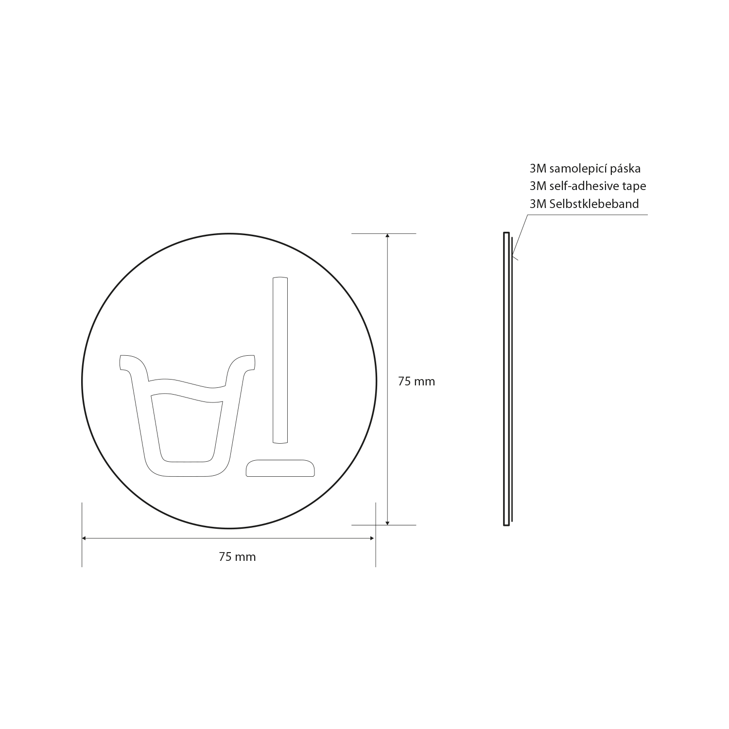 Cedule úklidová místnost, Ø 75mm, nerez mat