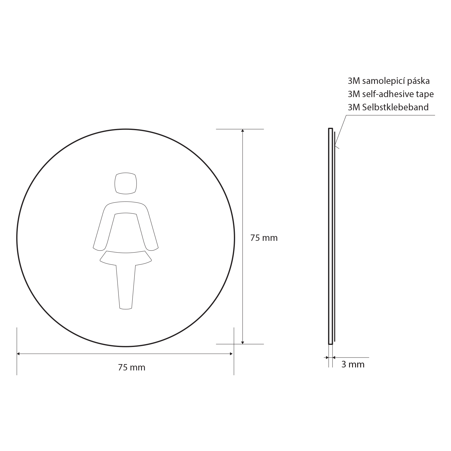 Cedule WC dámy, Ø 75mm, nerez mat