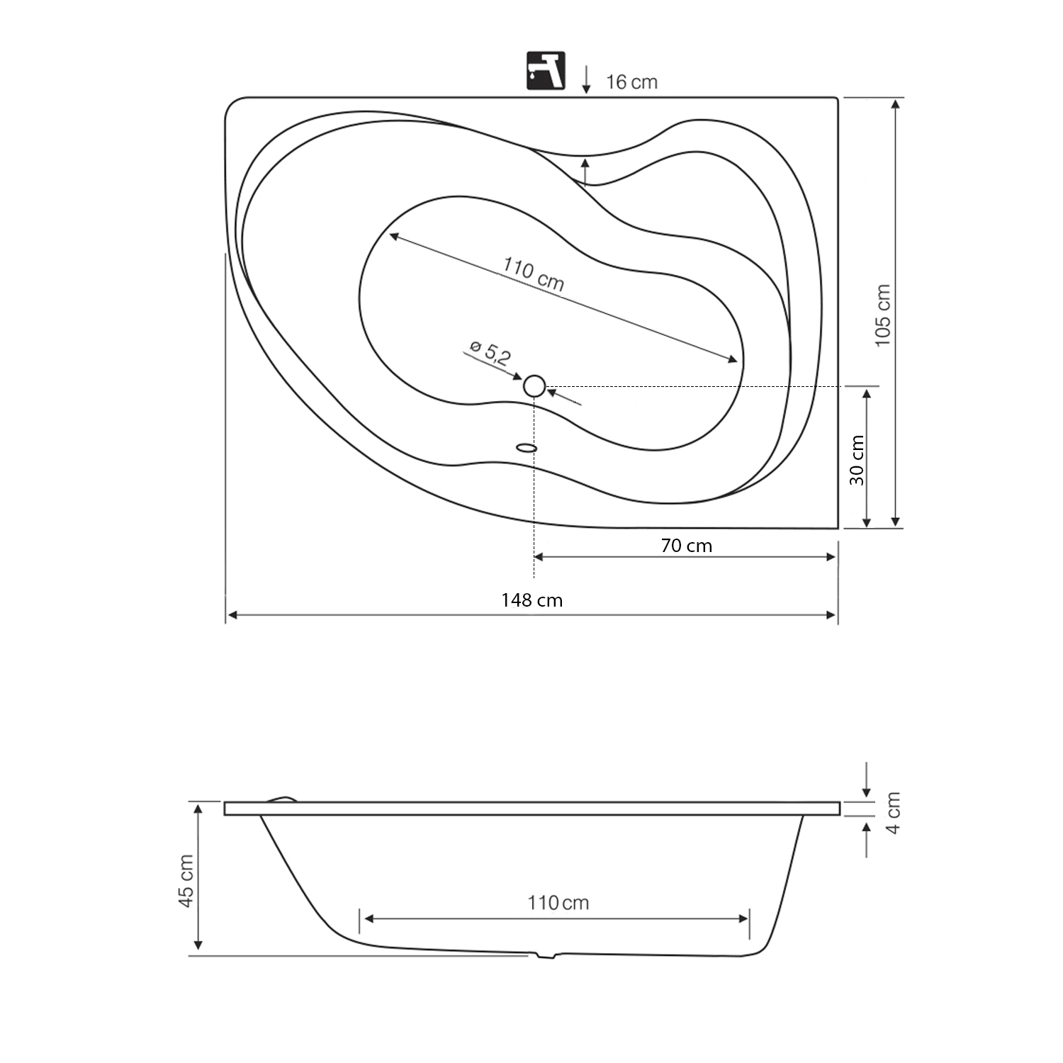 CIDLINA 150 vana 150x105x45cm, pravá, bílá