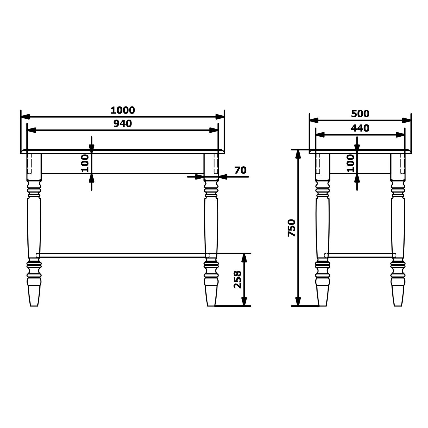 Stolek je vhodný pro umyvadla na postavení, absence šuplíku umožňuje libovolné umístění umyvadla i baterie v prostoru desky. Navíc je doplněn o praktickou spodní polici. V nabídce v šíři 80 a 100 cm a barevném provedení starobílá a mořený smrk.