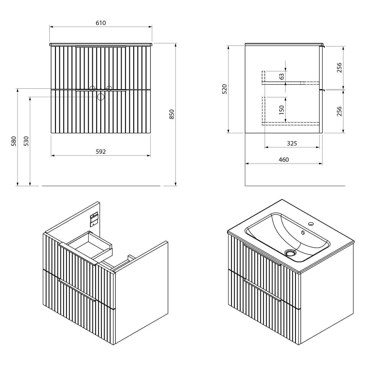 Série CIRASA nabízí zásuvkové skříňky s umyvadly z litého mramoru SIDRA a se 3 typy tenkých keramických umyvadel PIEDRA, PRACTICO a SLIM. Umyvadla PRACTICO mají hloubku pouhých 40 cm, jsou proto vhodná do koupelen menších rozměrů. Skříňky s umyvadlem SIDRA, PIEDRA nebo SLIM lze kombinovat se spodní dvířkovou skříňkou. U skříněk s šířkou 70, 80 a 100 cm lze umyvadlo nahradit deskou pro umyvadlo na postavení. Tím vzniká více rozměrových a designových variant. Skříňky jsou dodávány s úchytkami v chromovém provedení, ale lze dokoupit i jiné typy úchytek.