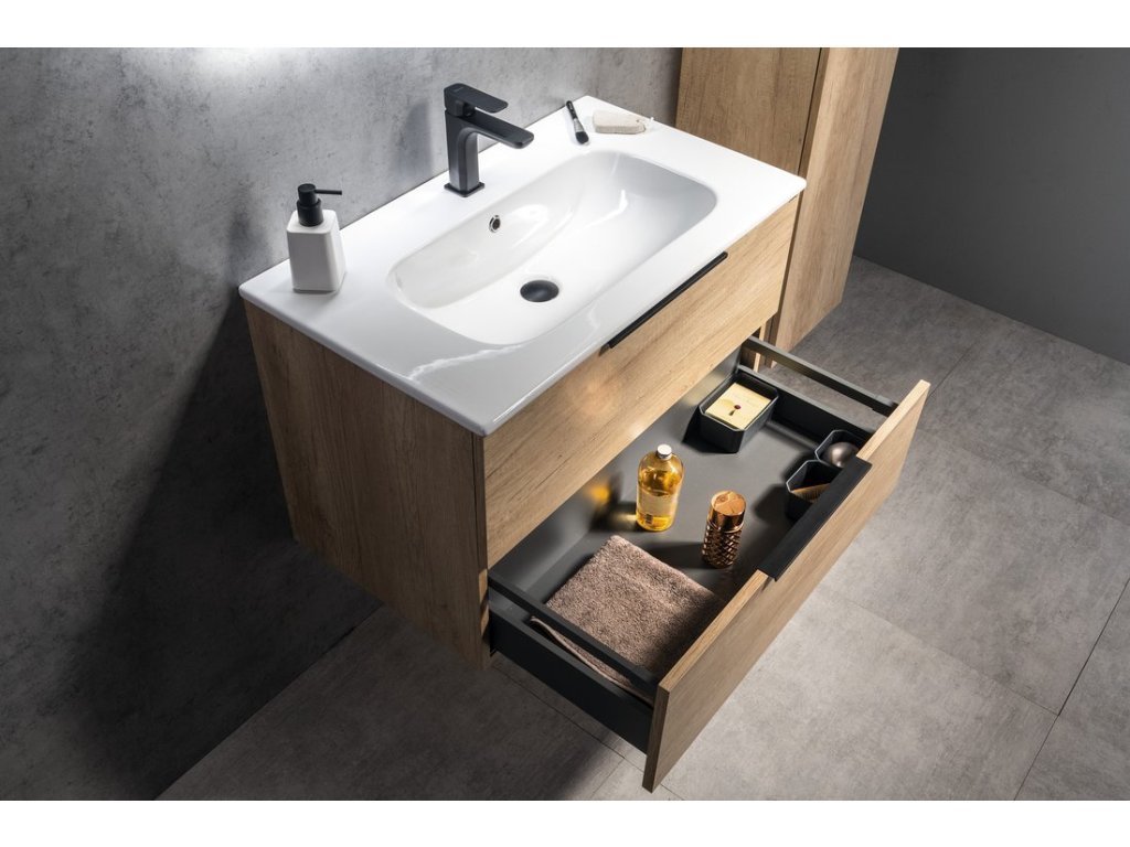 Velkou výhodou je možnost objednání praktických organizérů a misek LINDO pro uložení předmětů každodenní potřeby do horní i spodní zásuvky. Zásuvky jsou vybaveny výsuvy s pomalým dojezdem a automatickým dovřením, dvířka mají kování s tlumeným dovíráním. Úložný prostor lze rozšířit přidáním doplňkových skříněk ESPACE.