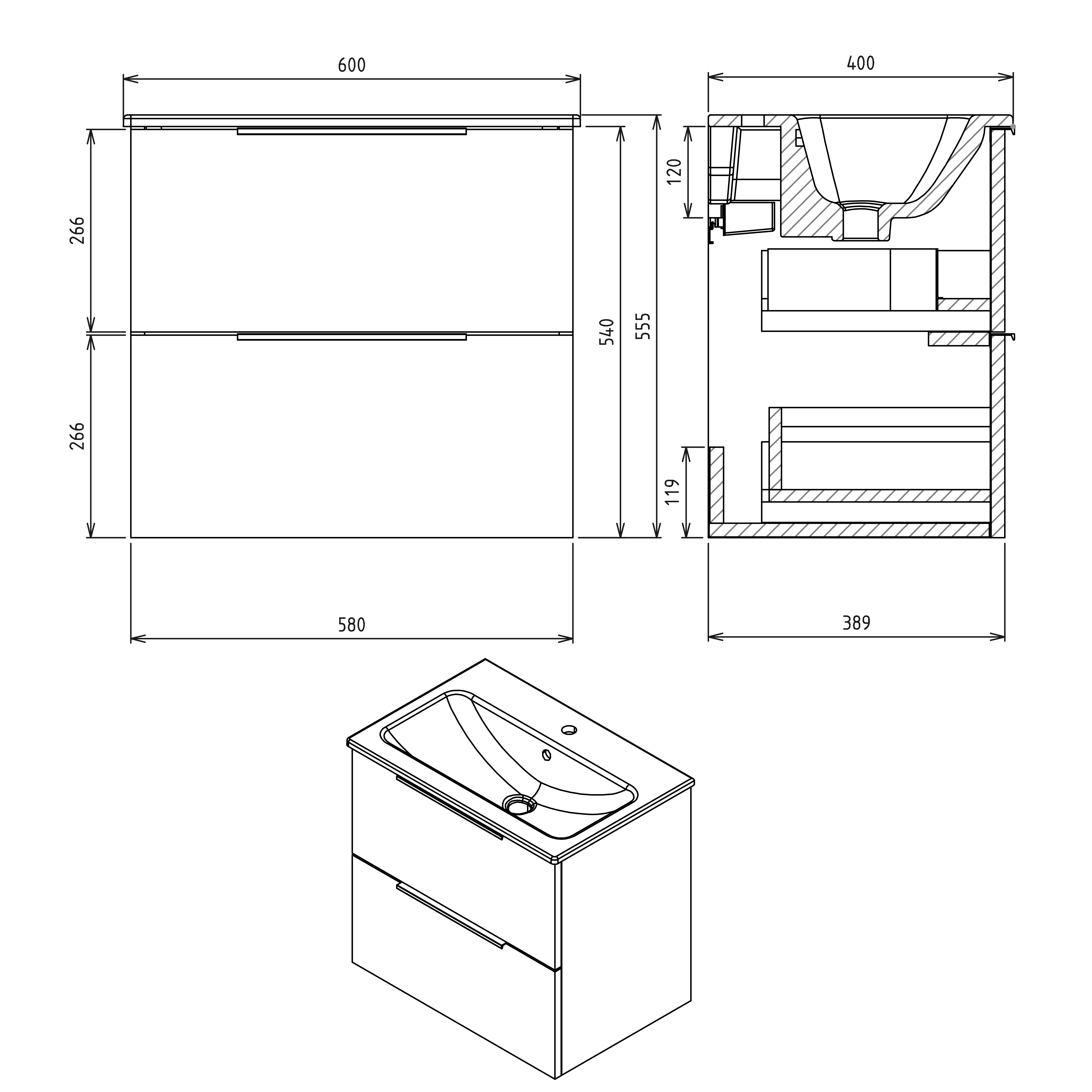 CIRASA umyvadlová skříňka 58x54x39cm, dub alabama