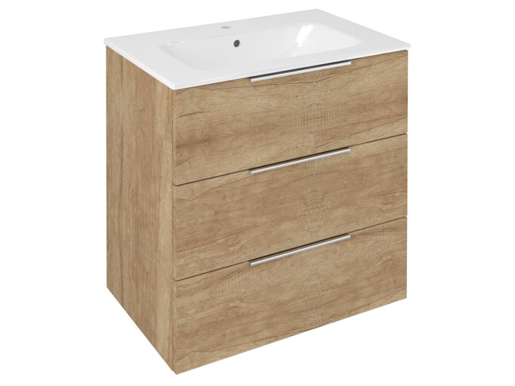 CIRASA umyvadlová skříňka 69,8x75x46cm, 3x zásuvka, dub Alabama