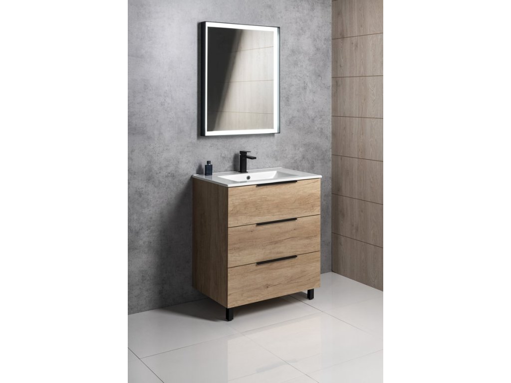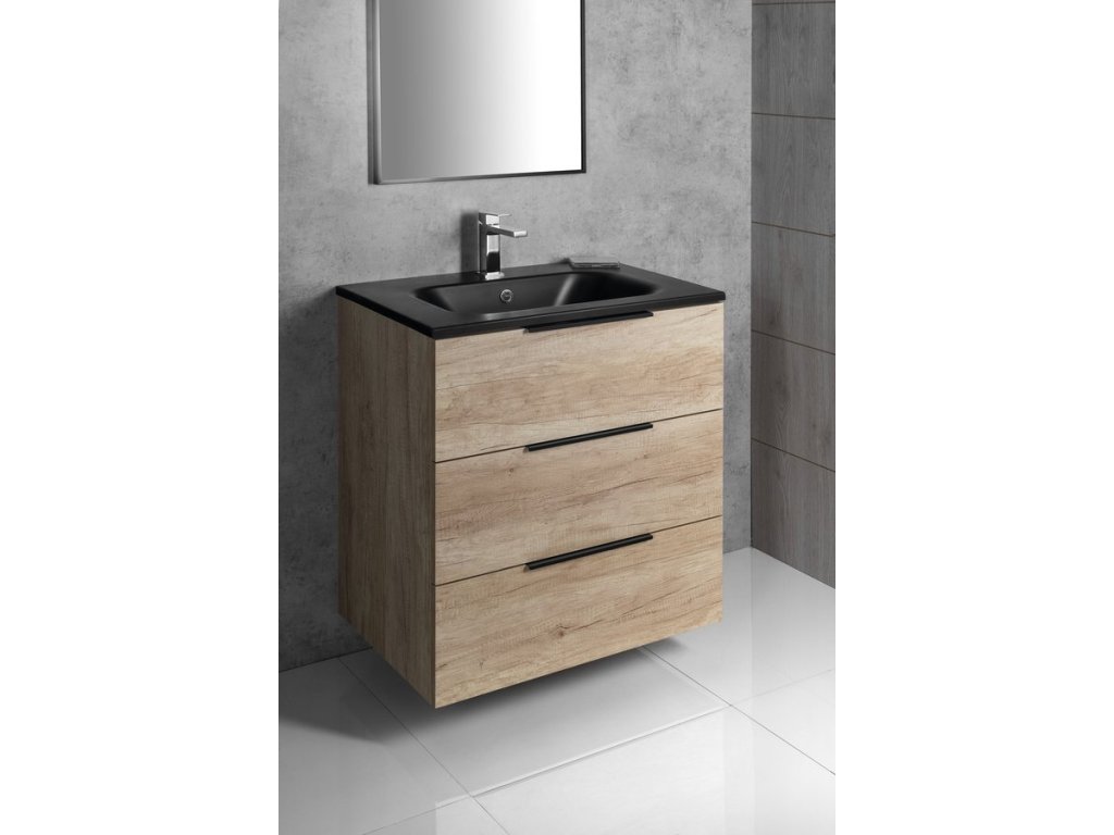 CIRASA umyvadlová skříňka 79,8x75x46cm, 3x zásuvka, borovice rustik