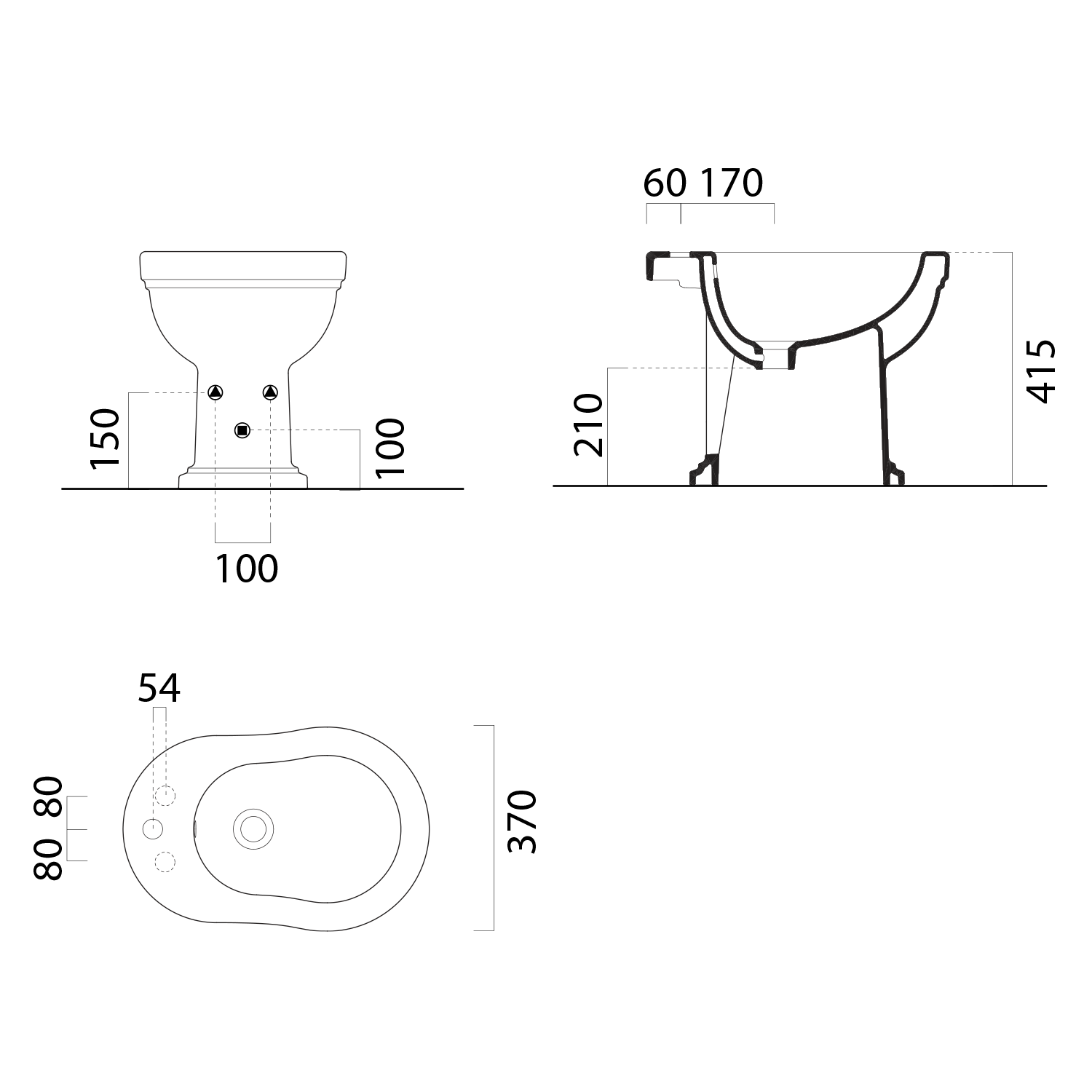 CLASSIC bidet, 37x54cm, 3 otvory, bílá ExtraGlaze