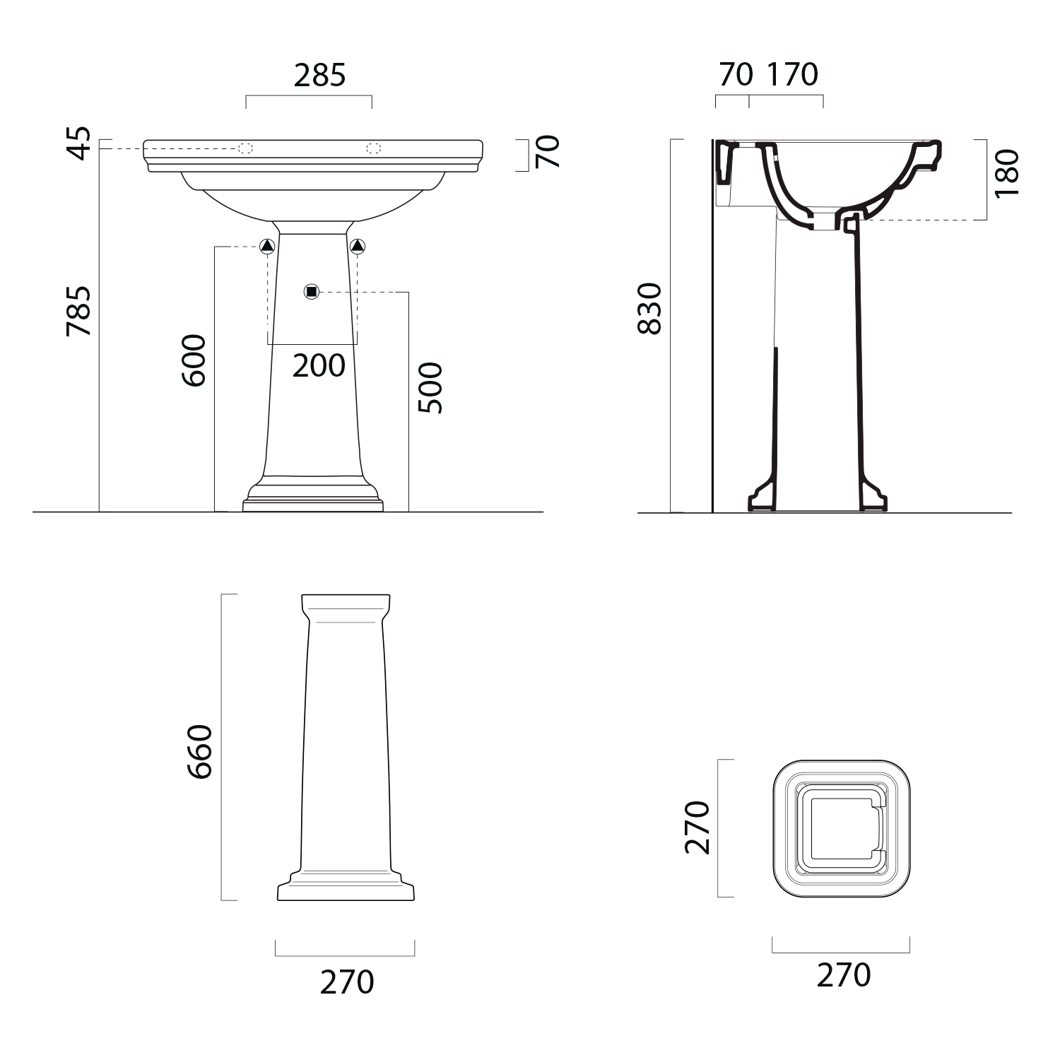CLASSIC keramický sloup k umyvadlu 66x27cm, bílá ExtraGlaze