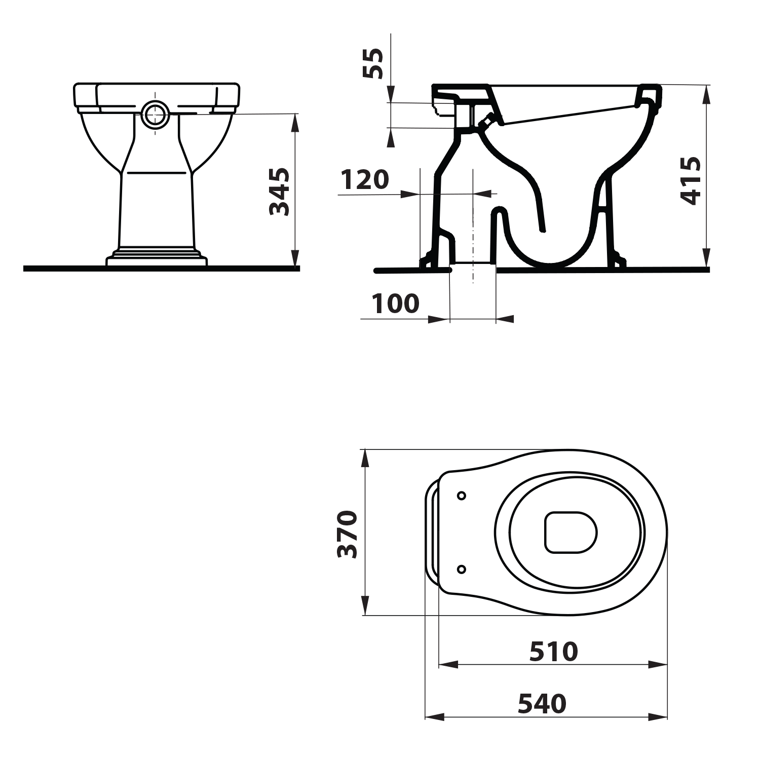 CLASSIC WC mísa stojící, 37x54cm, spodní odpad, bílá ExtraGlaze