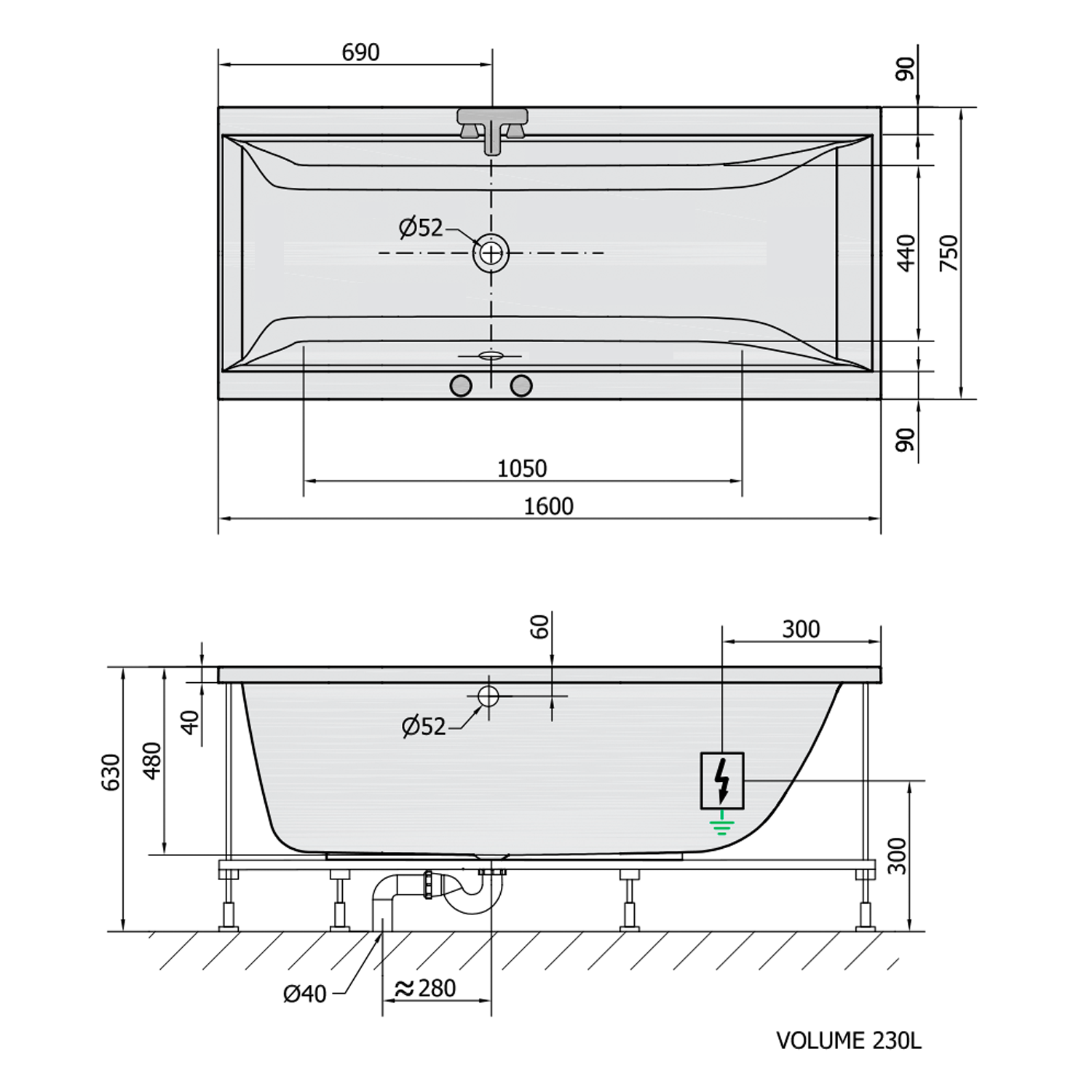 CLEO hydromasážní vana, 160x75x48cm, Attraction Hydro, chrom