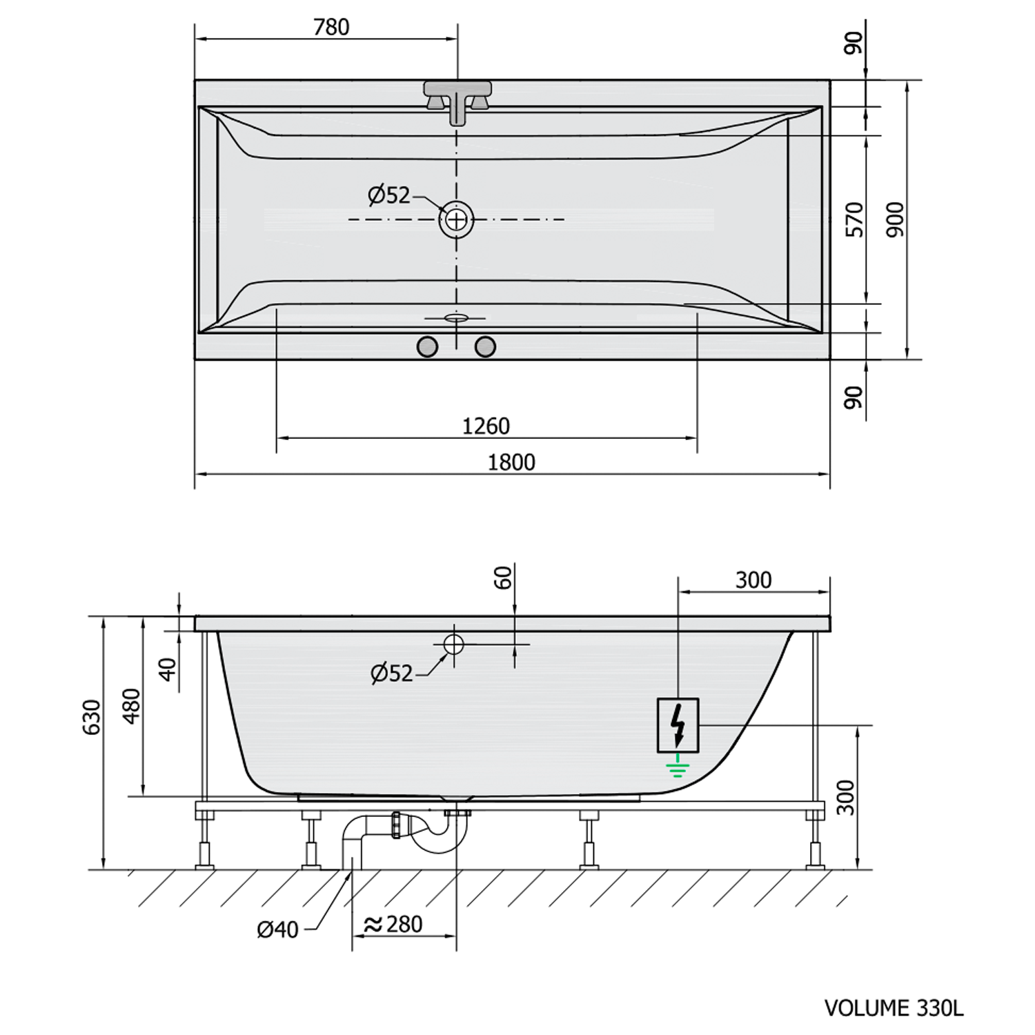 CLEO hydromasážní vana, 180x90x48cm, Attraction Hydro, chrom