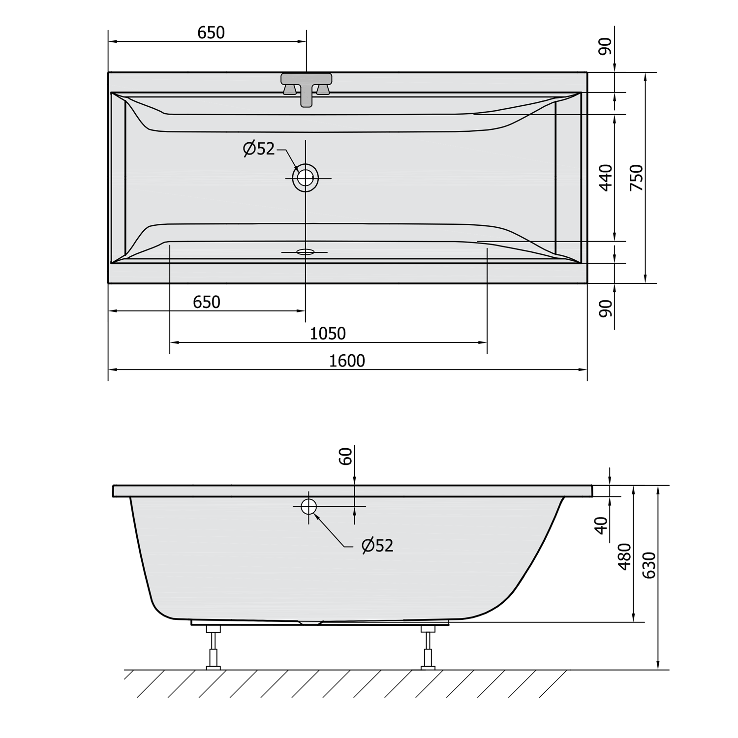 CLEO obdélníková vana 160x75x48cm, černá mat