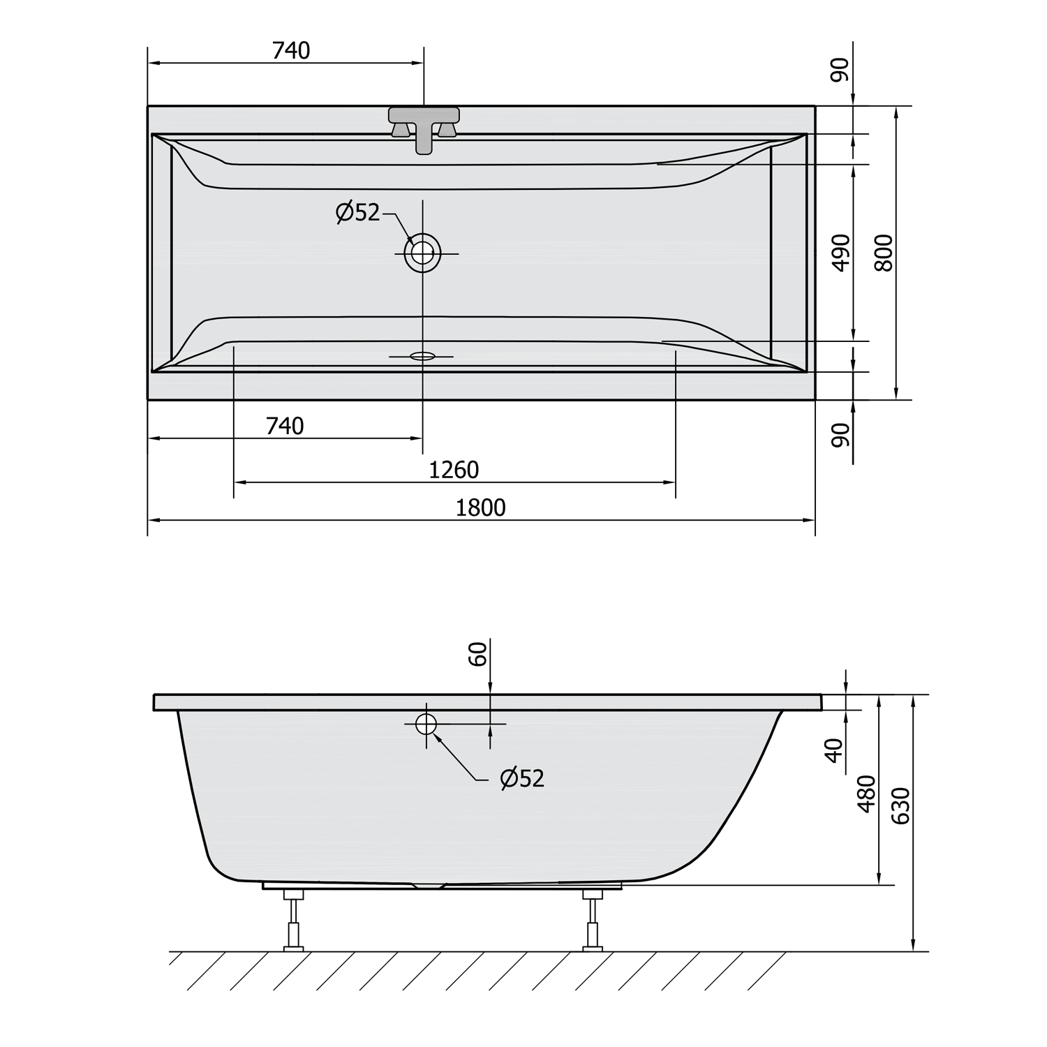 CLEO obdélníková vana 180x80x48cm, bílá