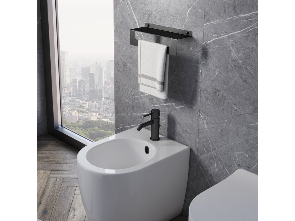 CLEO polička s držákem ručníků 300mm, černá mat