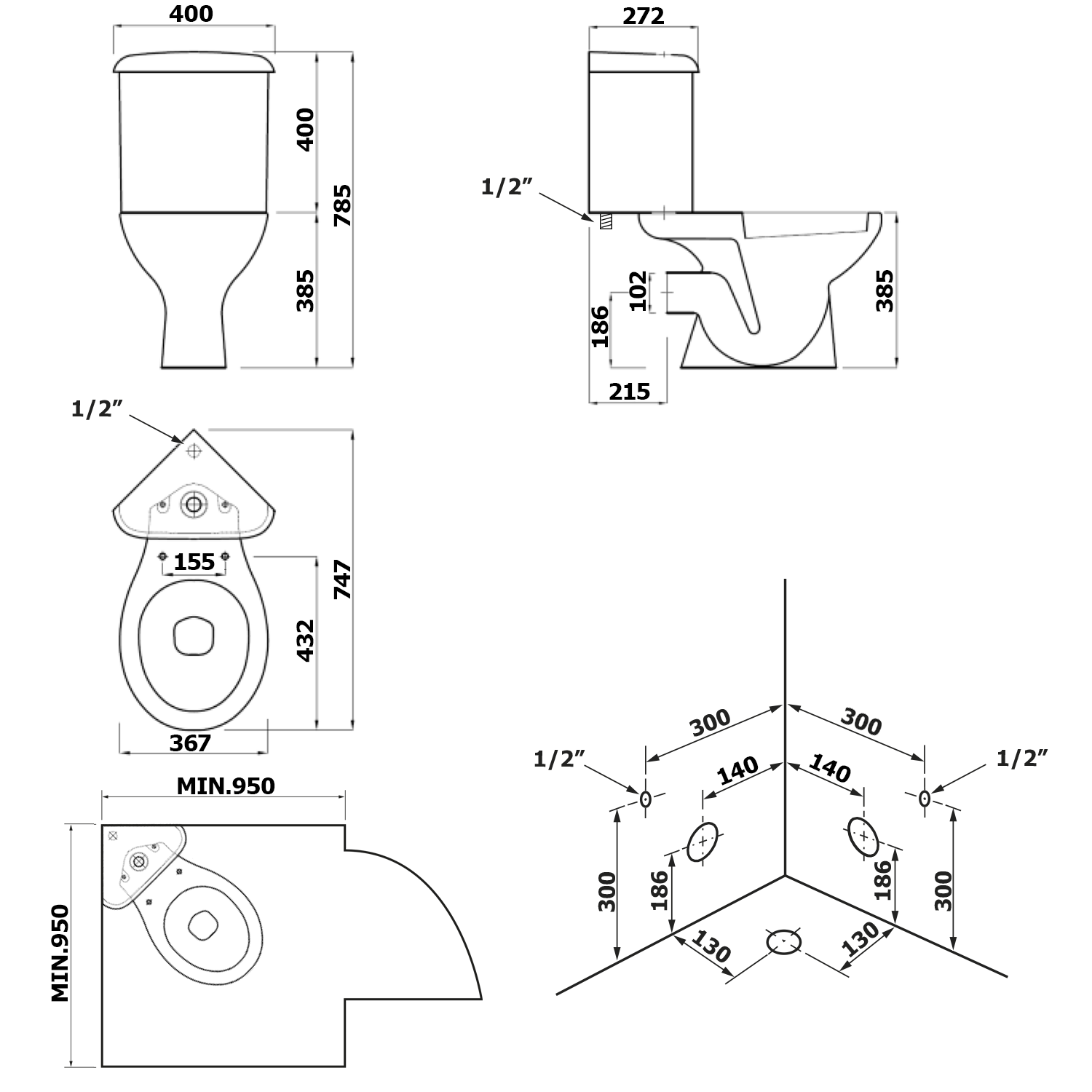 - Rohové provedení nabízí úsporné řešení pro malé místnosti toalet při zachování komfortu používání.
