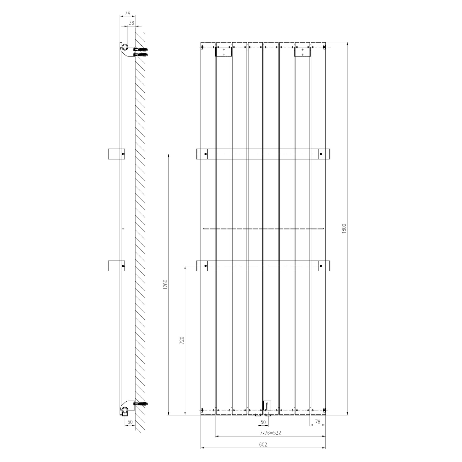 - Na radiátor lze umístit 1 až 2 držáky ručníků (nejsou součástí radiátoru)