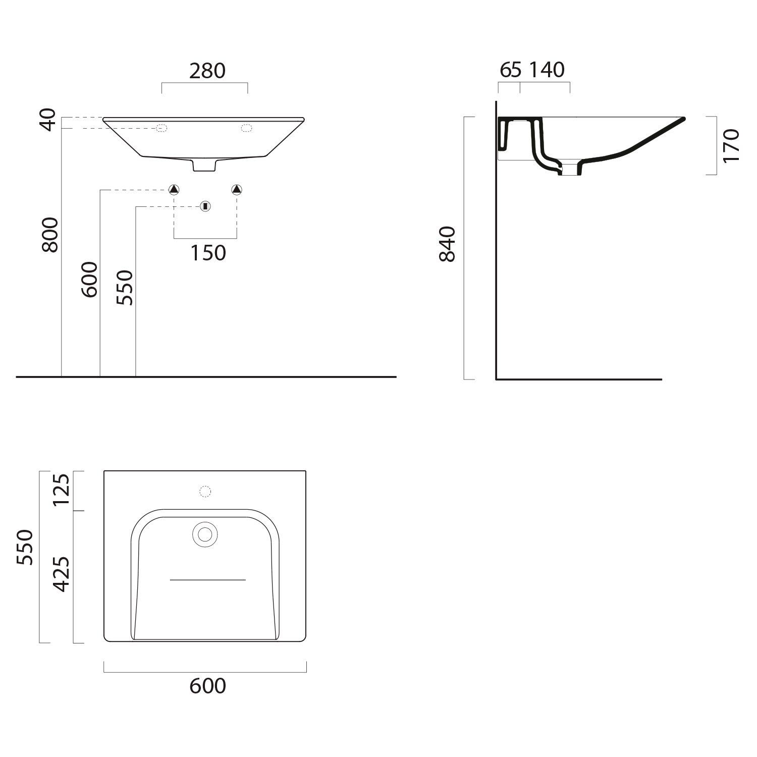 COMMUNITY keramické umyvadlo 60x55cm, bez přepadu a otvoru, bílá ExtraGlaze