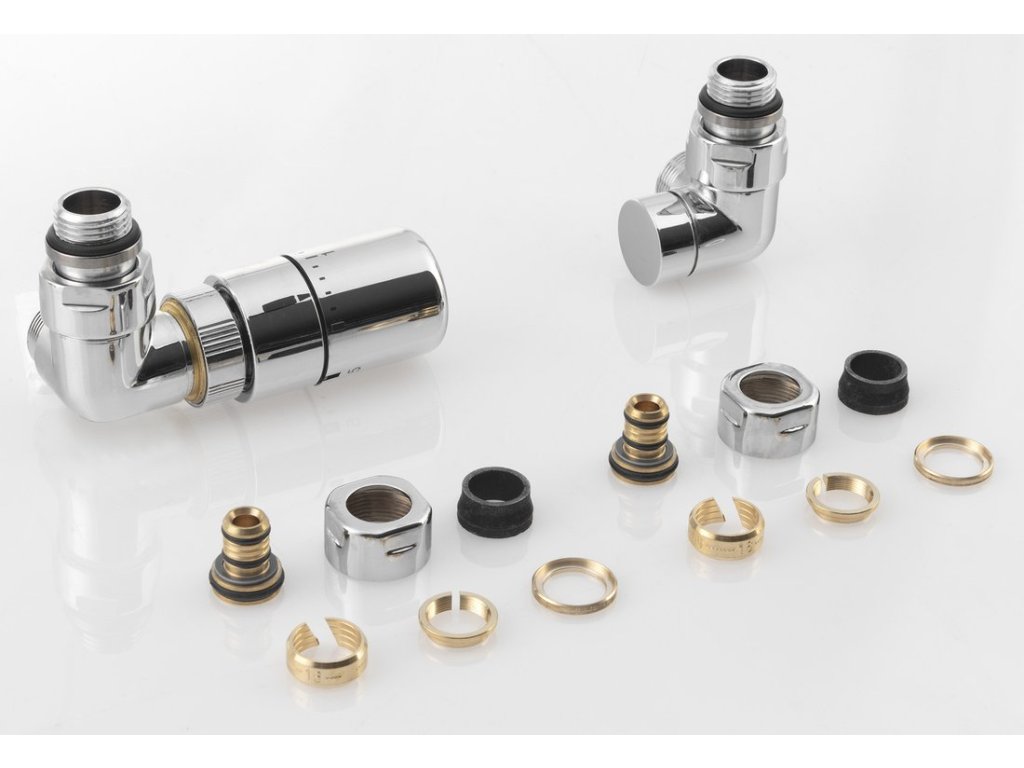 CORNER připojovací sada ventilů termostatická triaxiální, levé provedení, chrom