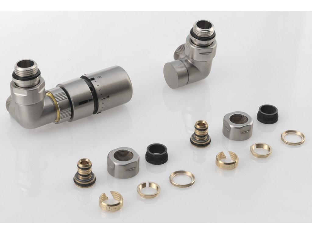 CORNER připojovací sada ventilů termostatická triaxiální, levé provedení, nerez mat