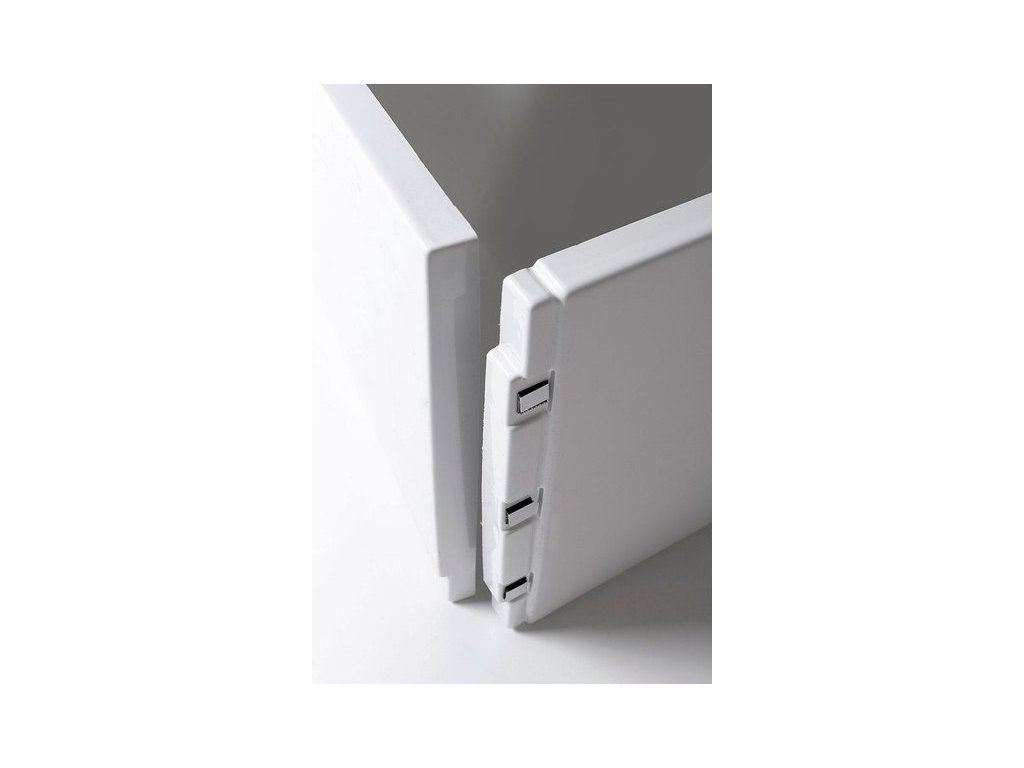 - COUVERT - čelní obkladový panel v levém provedení v kombinaci s bočním panelem COUVERT je vhodný pro obdélníkové mělčí vany Polysan instalované do rohu.