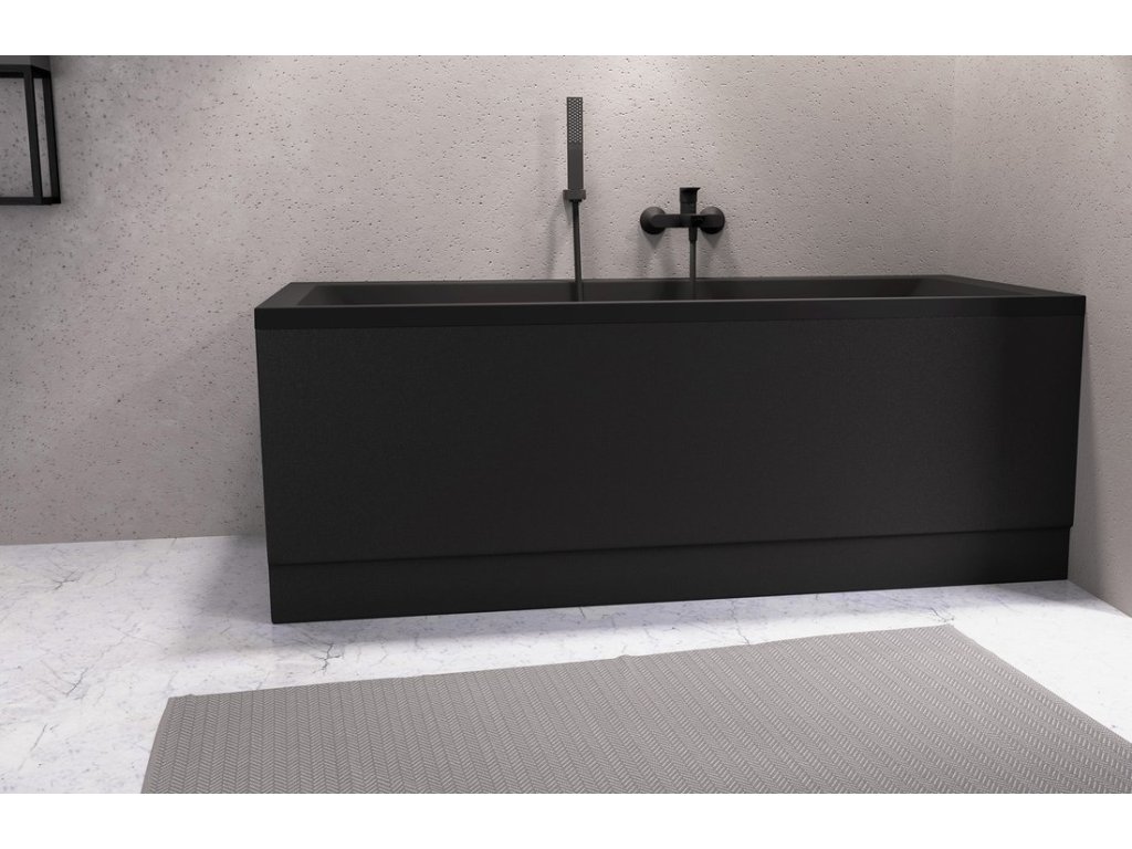 - Čelní panel je dodáván bez bočního panelu. Boční panel je nutno objednat samostatně dle rozměru vany.