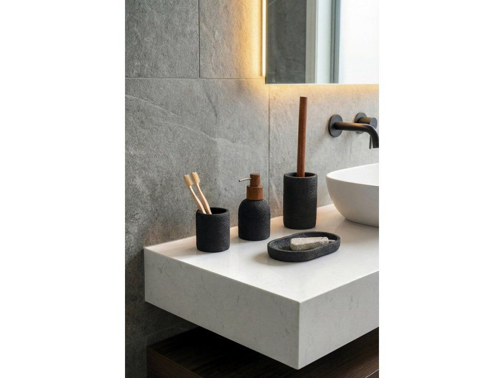 Doplňky CRAFT v decentním provedení kombinují texturu jutové tkaniny v béžovém a černém provedení s akáciovým dřevem. Vyjímat se budou v koupelně laděné do přírodního stylu. Mýdlenka nadstandardních rozměrů lze využít i jako miska na odkládání drobností a šperků.