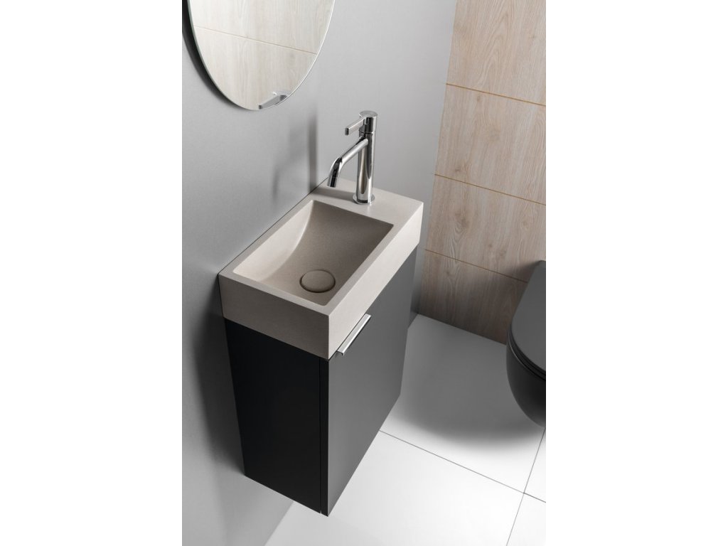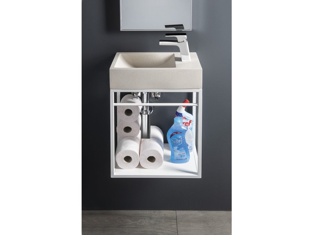 CREST R betonové umývátko, nástěnné, včetně výpusti, 40x22cm, bílý pískovec