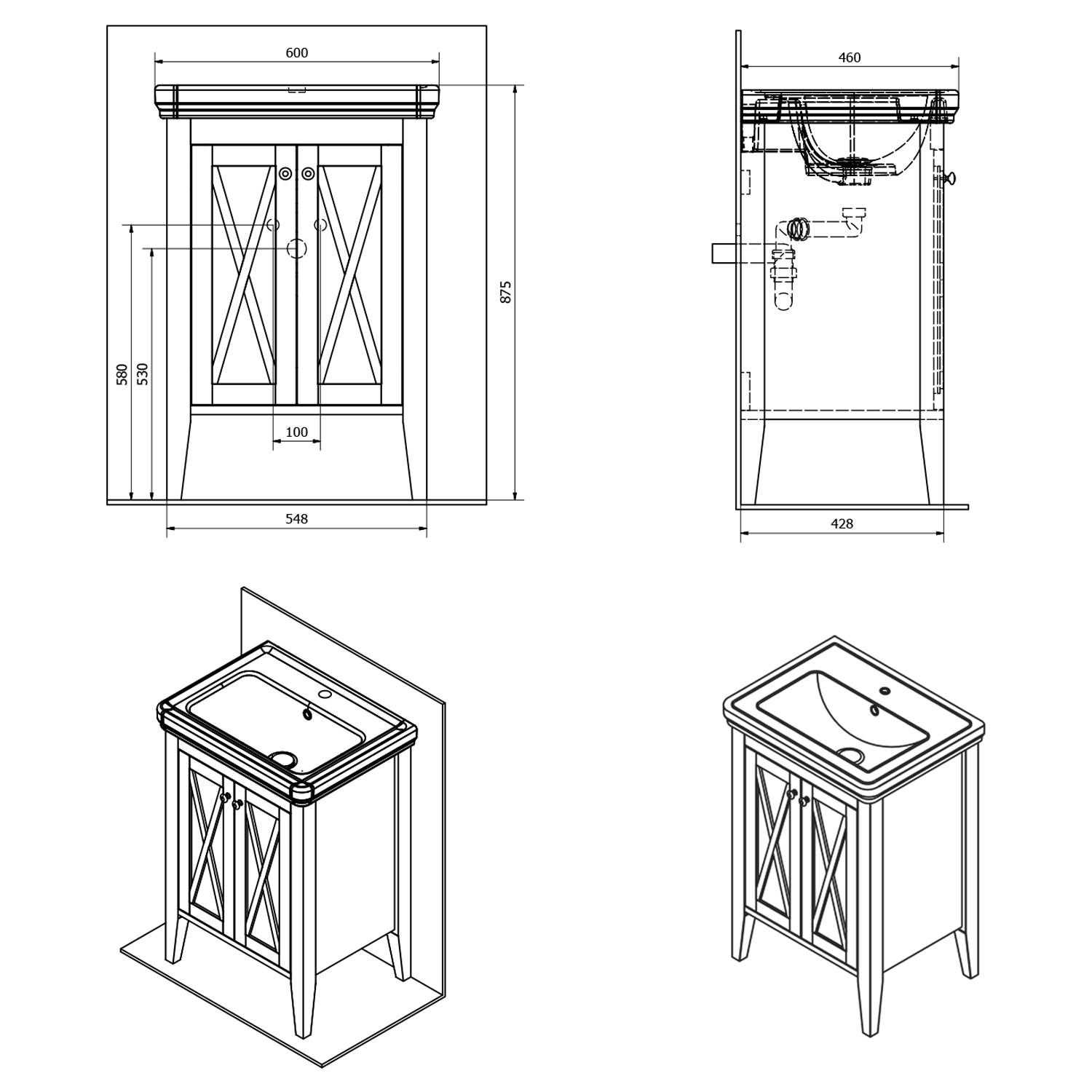 Umyvadlové skříňky CROSS jsou k dispozici v několika šířkách a lze je doplnit celou řadou bočních skříněk a zrcadel v obdobném designu.