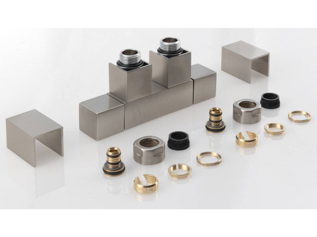 CUBE TWIN připojovací sada ventilů pro středové připojení, nerez mat