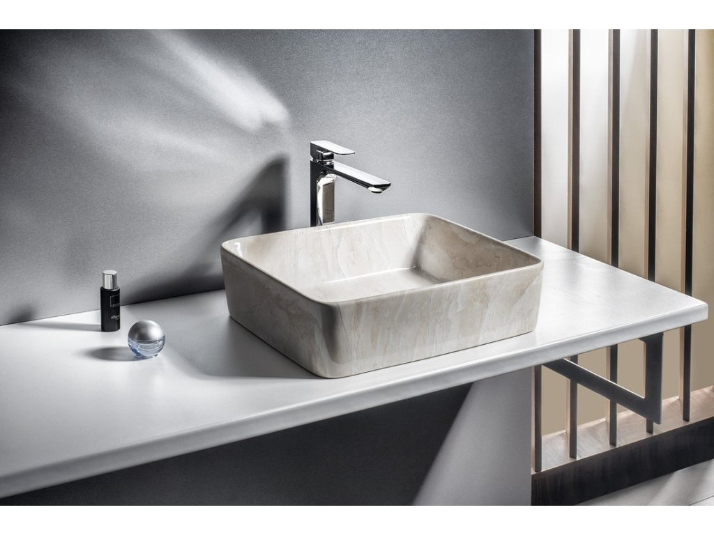 Série keramických umyvadel DALMA zaujme kamenným efektem. Umyvadla jsou glazovaná s vypálenými obtisky v designu kamene, čímž je zaručena stálost a trvanlivost dekoru. Vybírat můžete nejen ze tří dekorů v odstínech mramoru, ale i z pěti tvarů. Umyvadla jsou určena k postavení na desku, ke všem lze dokoupit uzavíratelnou výpust v barvě umyvadla.
