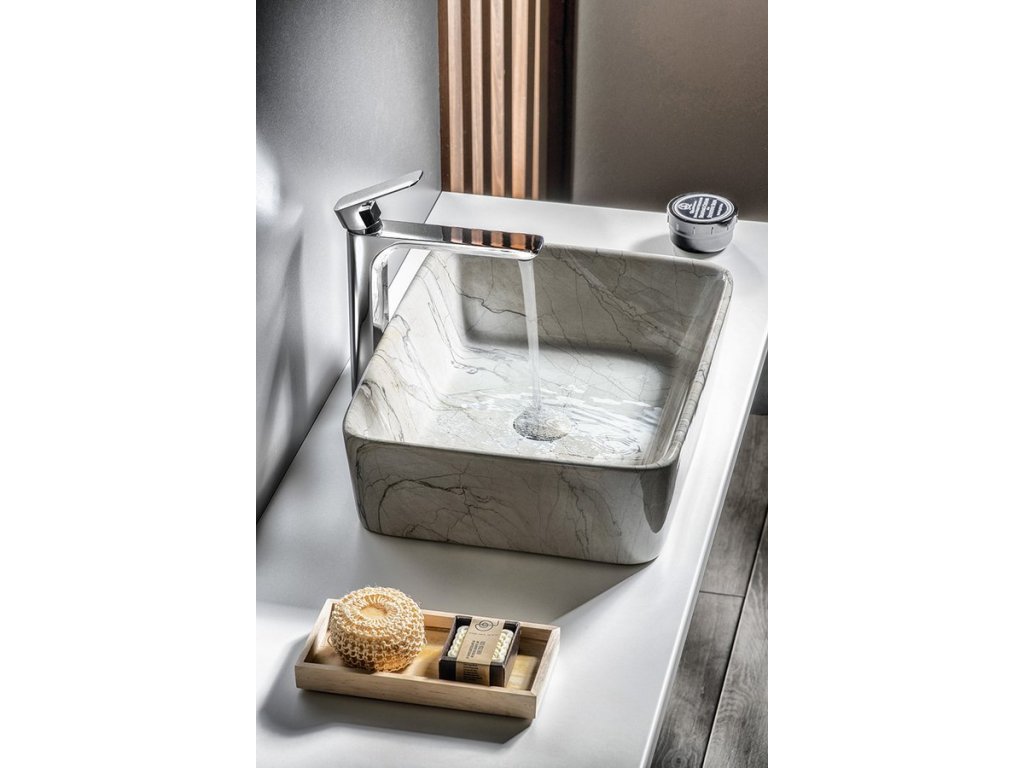 Série keramických umyvadel DALMA zaujme kamenným efektem. Umyvadla jsou glazovaná s vypálenými obtisky v designu kamene, čímž je zaručena stálost a trvanlivost dekoru. Vybírat můžete nejen ze tří dekorů v odstínech mramoru, ale i z pěti tvarů. Umyvadla jsou určena k postavení na desku, ke všem lze dokoupit uzavíratelnou výpust v barvě umyvadla.