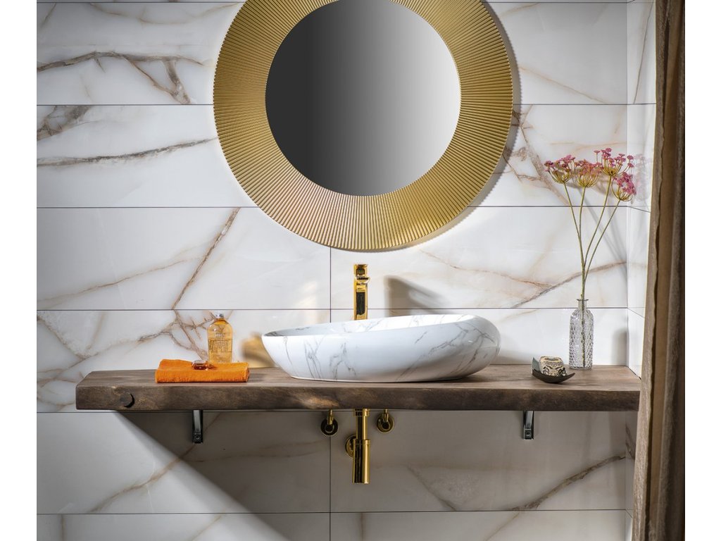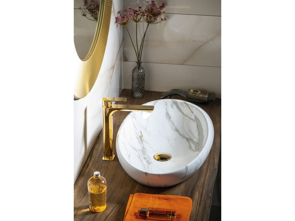 Série keramických umyvadel DALMA zaujme kamenným efektem. Umyvadla jsou glazovaná s vypálenými obtisky v designu kamene, čímž je zaručena stálost a trvanlivost dekoru. Vybírat můžete nejen ze tří dekorů v odstínech mramoru, ale i z pěti tvarů. Umyvadla jsou určena k postavení na desku, ke všem lze dokoupit uzavíratelnou výpust v barvě umyvadla.
