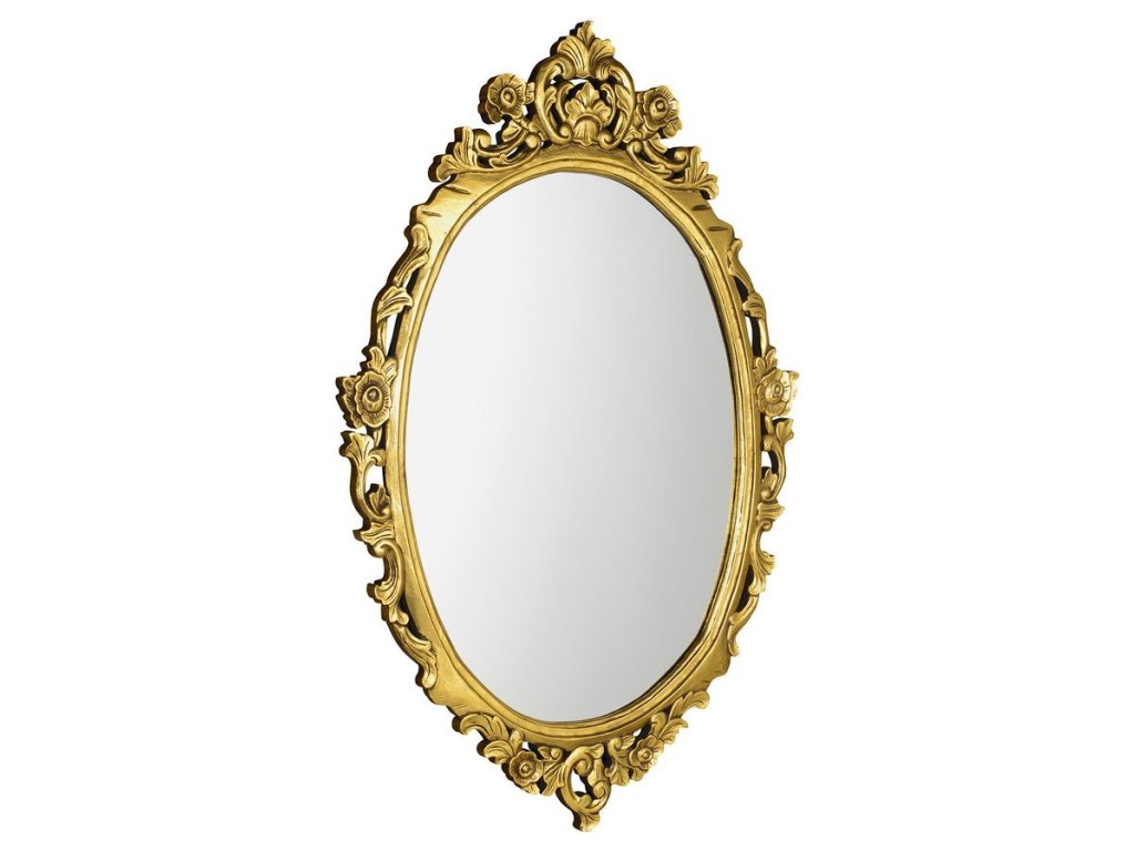DESNA oválné zrcadlo ve vyřezávaném rámu, 80x100cm, zlatá