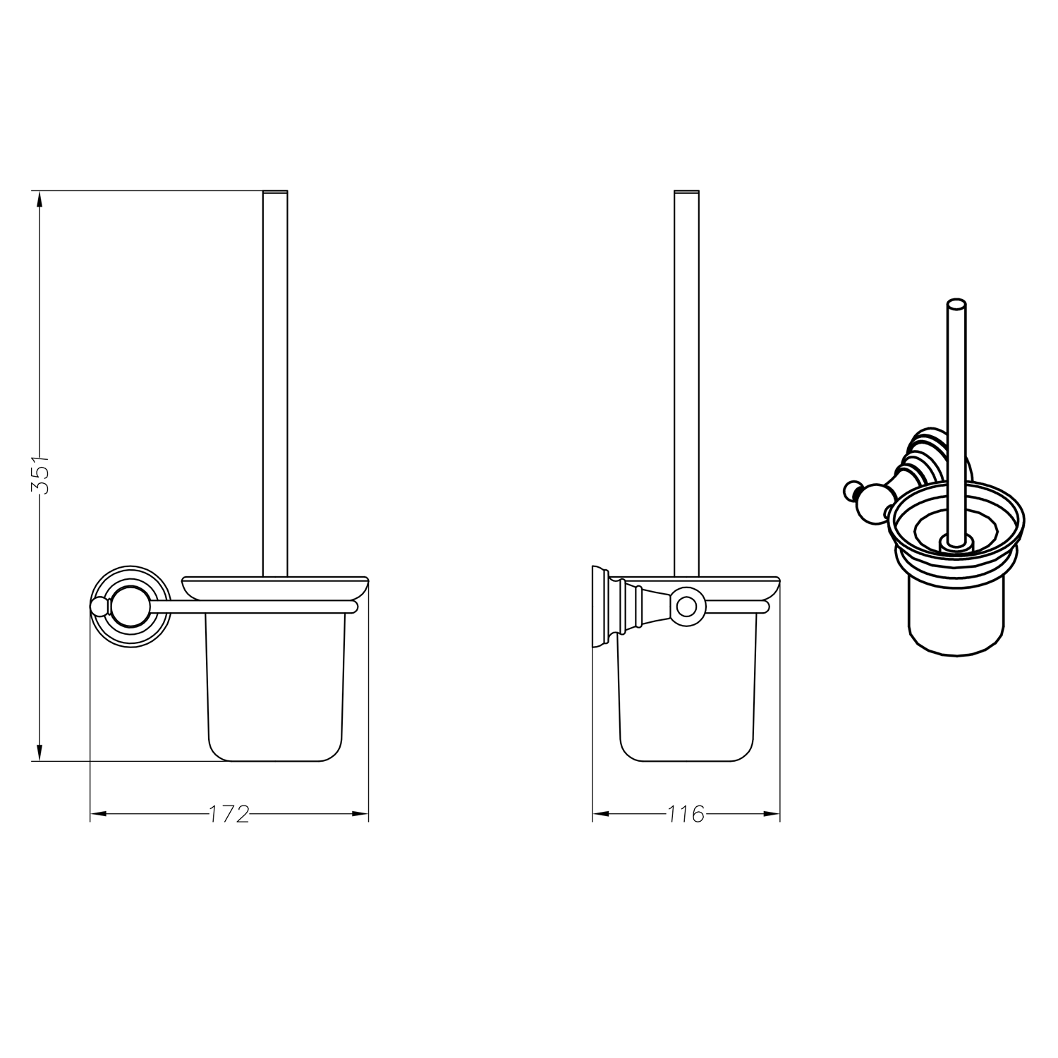 DIAMOND WC štětka závěsná, mléčné sklo, bronz