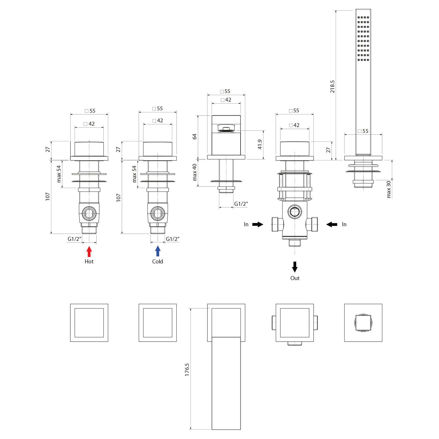 Kolekce obsahuje veškeré potřebné komponenty do koupelny. V nabídce je i sprchový sloup, který má ultra štíhlou hlavovou sprchu. Série DIMY je pro moderní koupelnu v hranatém stylu to pravé. V nabídce v chromu a matně černé.