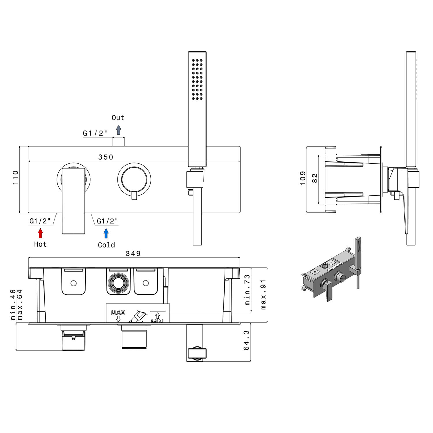 DIMY podomítková sprchová baterie s ruční sprchou, 2 výstupy, černá mat