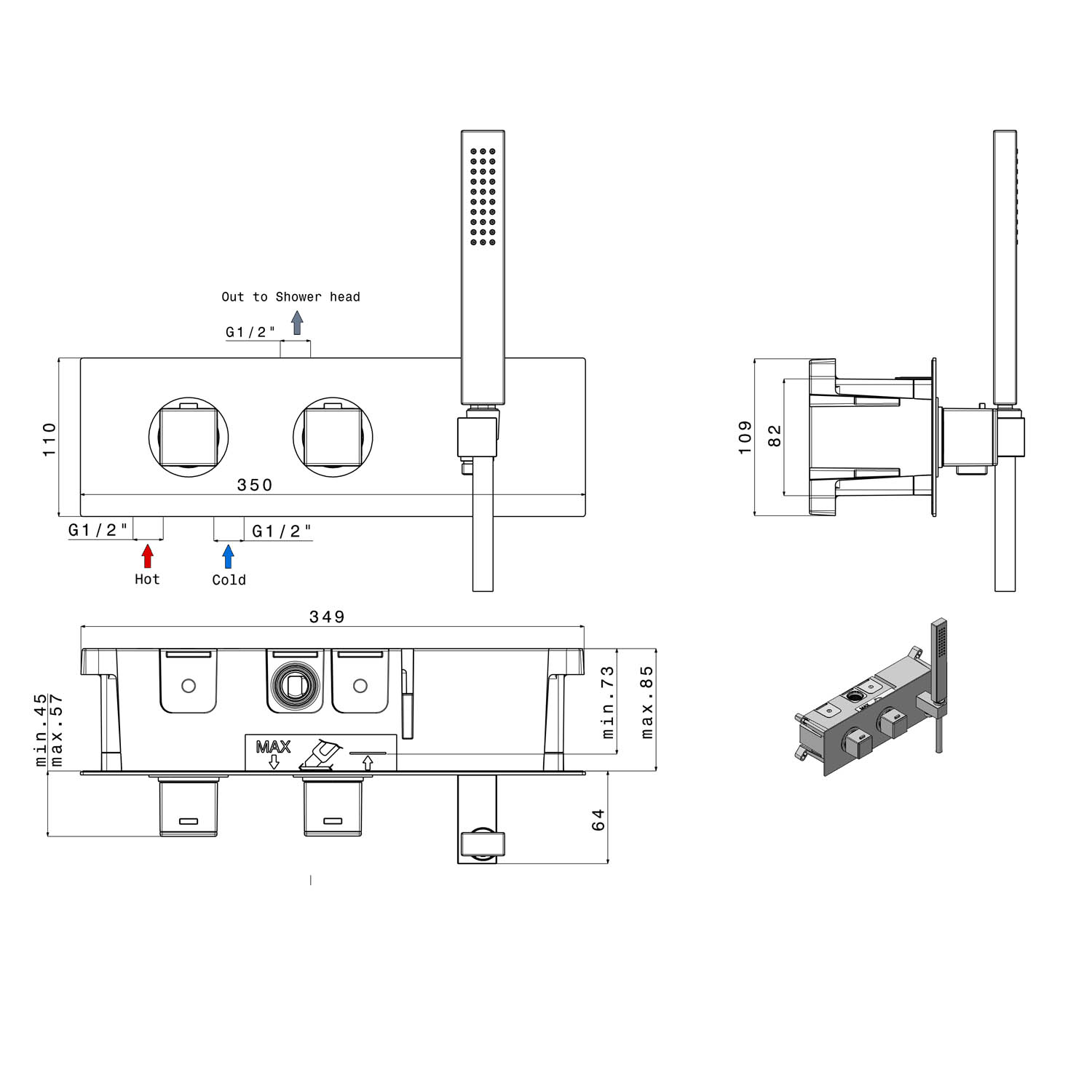 DIMY podomítková sprchová/vanová termostatická baterie s ruční sprchou, 2 výstupy,chrom