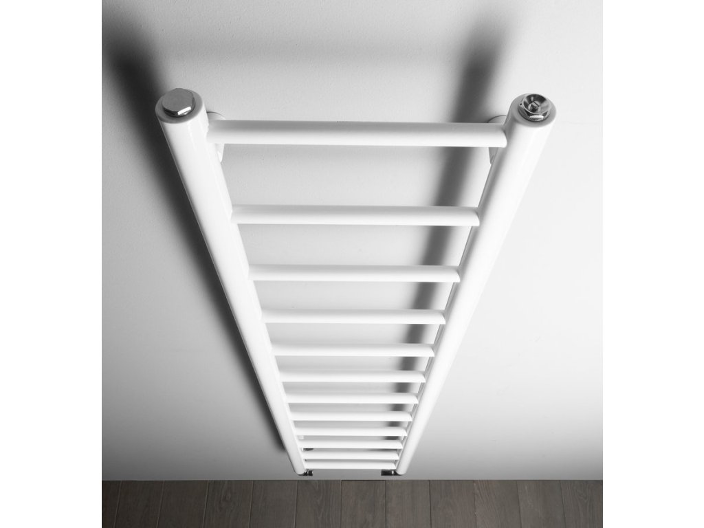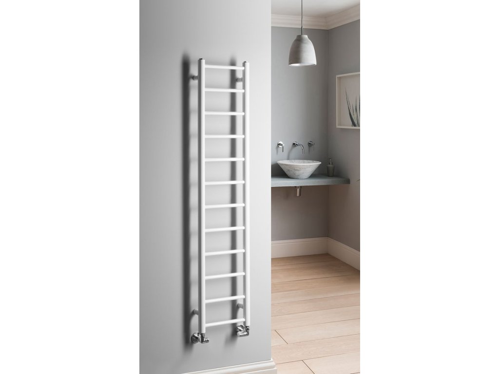 Elegantní koupelnový radiátor ze správně kombinovaných průměrů vodorovných a svislých trubek. Krása v jednoduchosti skloubená s atraktivním barevným provedením.
