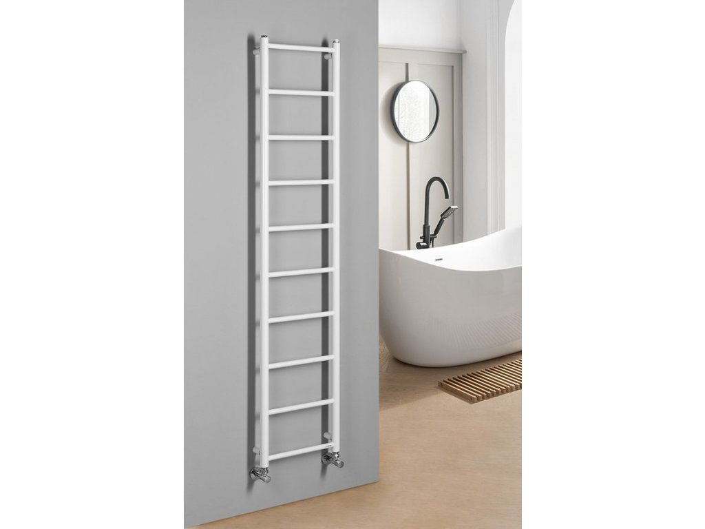 Elegantní koupelnový radiátor ze správně kombinovaných průměrů vodorovných a svislých trubek. Krása v jednoduchosti skloubená s atraktivním barevným provedením.